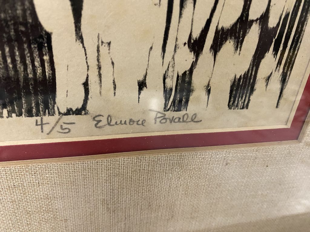Elmore Povall Signed & Numbered Block Print, Mississippi Artist, 30"h., 20"w. Elmore Povall Signed & Numbered Block Print, Mississippi Artist, 30"h., 20"w.
