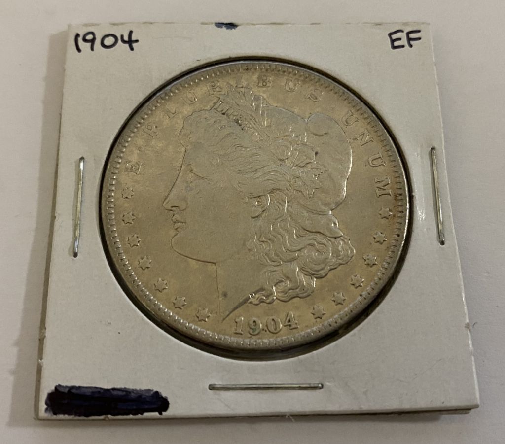 1904 Morgan Silver Dollar, EF, paper Case, Location Case by Office 1904 Morgan Silver Dollar, EF, paper Case, Location Case by Office