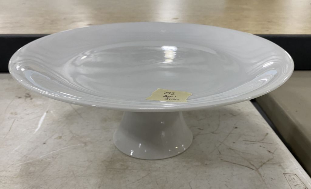 Tiffany Co. Porcelain White Cake Stand, 4 1/2"h., 12"dia, Location Right Metal Shelves Tiffany Co. Porcelain White Cake Stand, 4 1/2"h., 12"dia, Location Right Metal Shelves