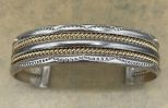 Men's Western Style Sterling .925, 1/20 12K Gold Filled Cuff Bracelet with etched pattern, gold filled cord center, 34.6 grams, 7", 7.5", Location Case by office Men's Western Style Sterling .925, 1/20 12K Gold Filled Cuff Bracelet with etched pattern, gold filled cord center, 34.6 grams, 7", 7.5", Location Case by office