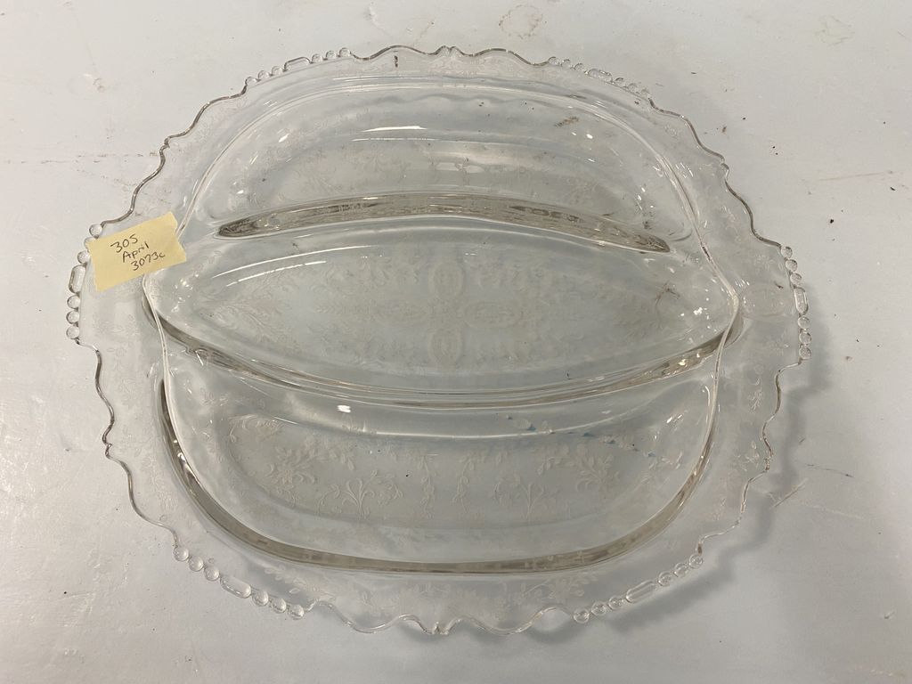 Vintage Floral Divided Bowl, 12"h., Location Front Left Shelves Vintage Floral Divided Bowl, 12"h., Location Front Left Shelves