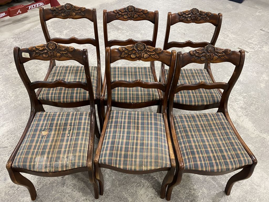 311 6 Vintage Victorian Rose Carved Dining Chairs