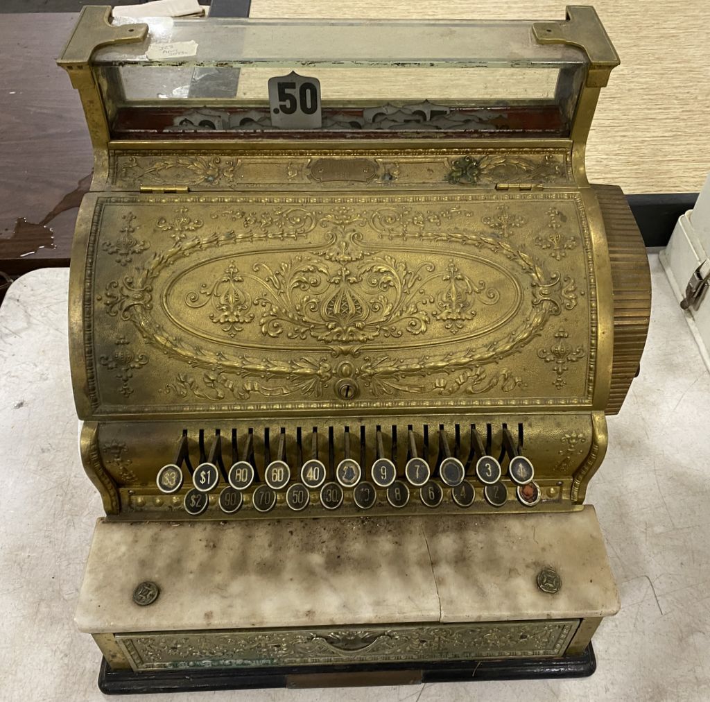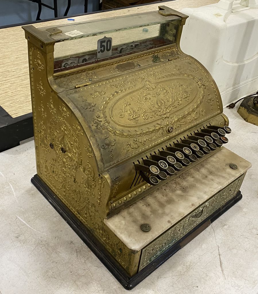 National Cash Register, drawer does open, buttons are stuck, 18"h., 17"w, marble has crack, needs work. National Cash Register, drawer does open, buttons are stuck, 18"h., 17"w, marble has crack, needs work.