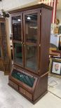 Large Oak 12 Gun Cabinet, double glass door, bottom storage with drawers, good condition, 80"h., 40"w. Location Row 3 Large Oak 12 Gun Cabinet, double glass door, bottom storage with drawers, good condition, 80"h., 40"w. Location Row 3