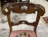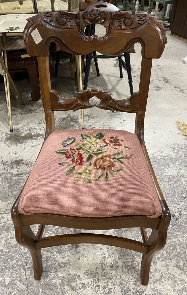 Vintage Mahogany Carved Parlor Side Chair, pink upholstery cushion, carved, Location Row 6 Vintage Mahogany Carved Parlor Side Chair, pink upholstery cushion, carved, Location Row 6