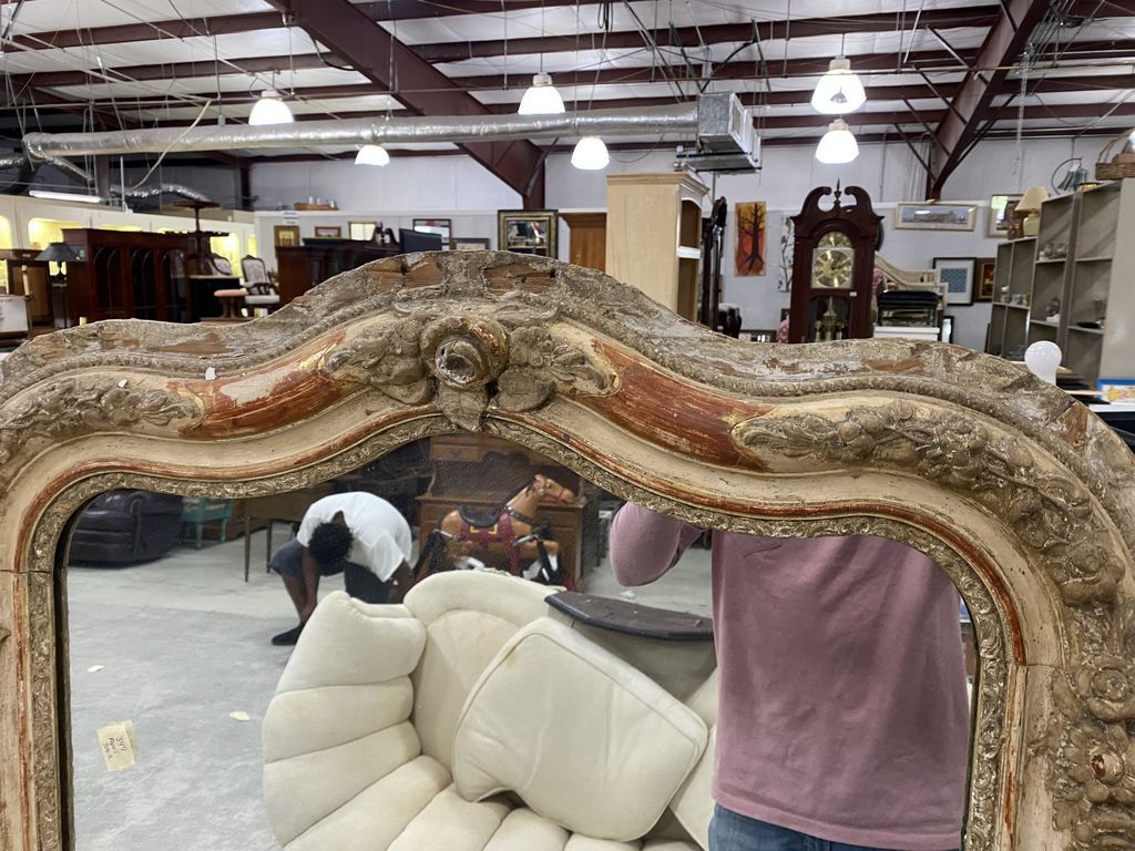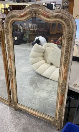 347 Vintage French Style Ornate Wall Mirror, age distressed, 62"h., 32"w.
