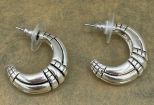 376 Designed Sterling .925 Stamped Chunky Carved Semi Hoop Earrings