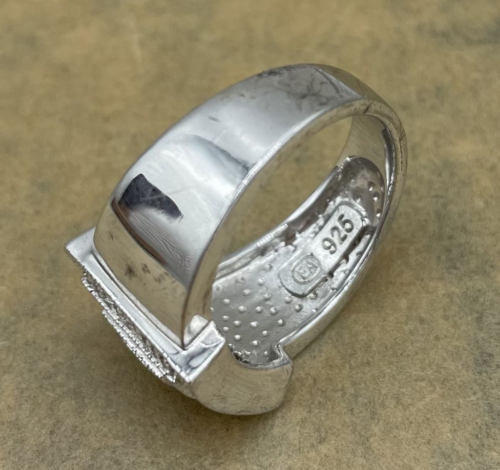 Sterling Silver .925 Stamped "EA" Rectangular Chip Diamond Step Cuff Ring, 7 gram, size 8. Location Case by Office Sterling Silver .925 Stamped "EA" Rectangular Chip Diamond Step Cuff Ring, 7 gram, size 8. Location Case by Office