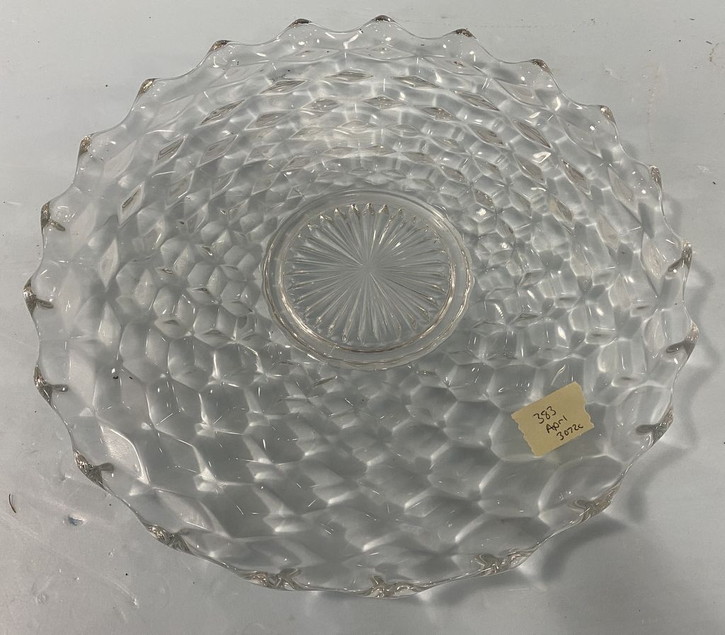 Fostoria American Clear Glass Platter, 13"dia, Location Back Metal Shelves Fostoria American Clear Glass Platter, 13"dia, Location Back Metal Shelves