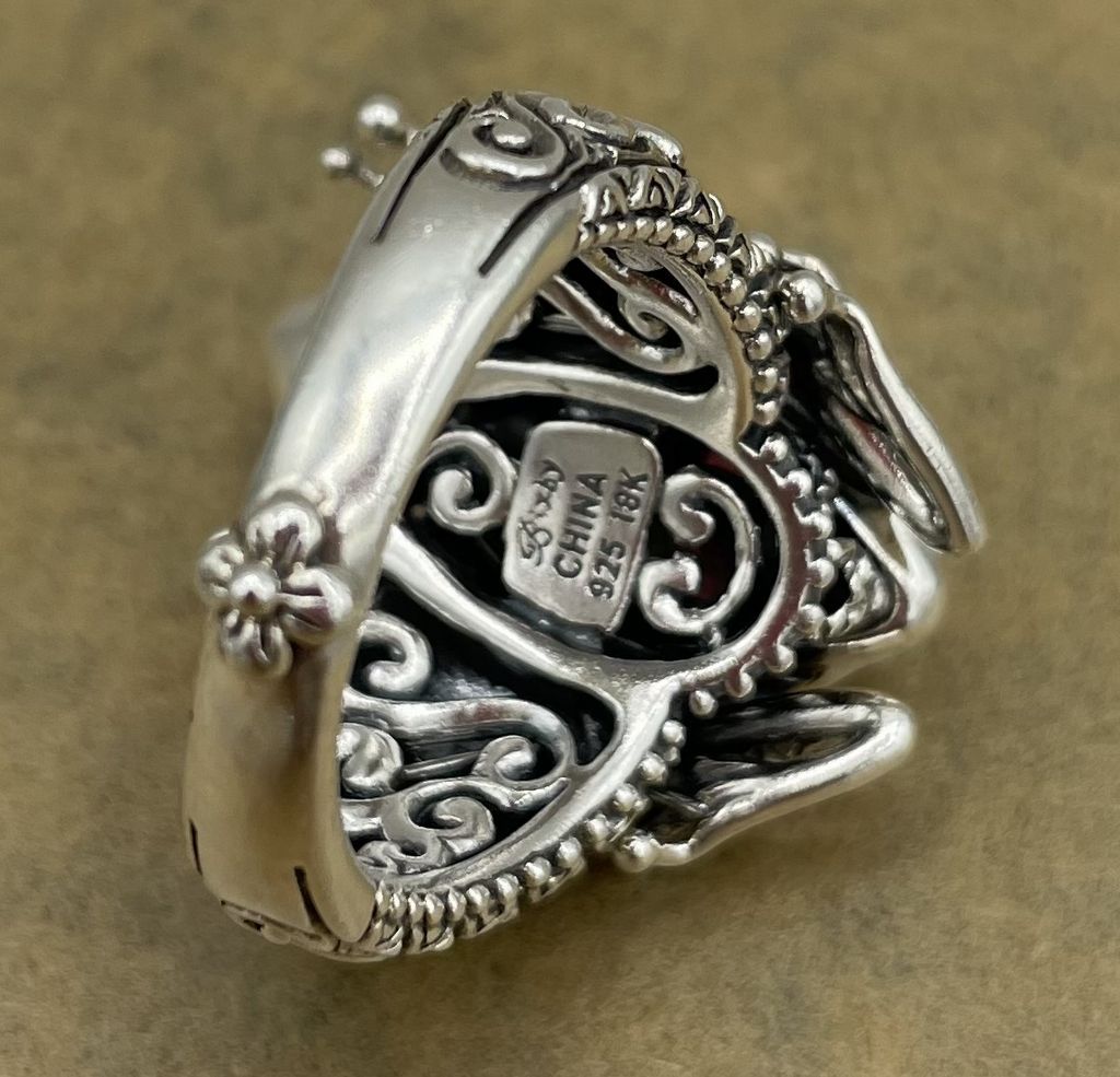 384 Designer Sterling Silver .925 18K Stamped "Bixby" China Frog Ring