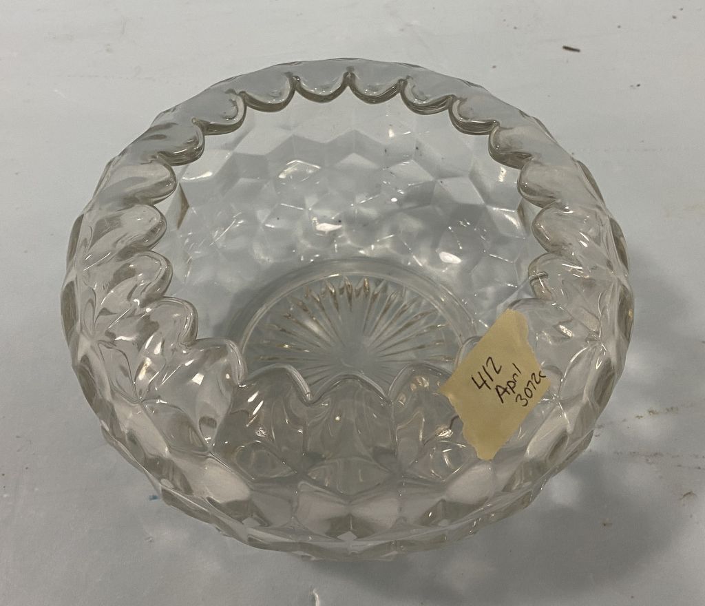 Fostoria American Clear Glass Bowl, 4"h, Location Back Metal Shelves Fostoria American Clear Glass Bowl, 4"h, Location Back Metal Shelves