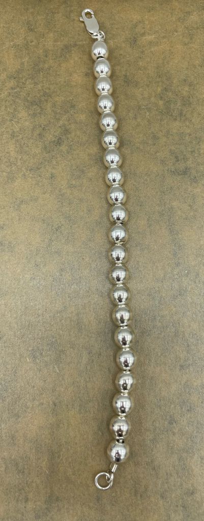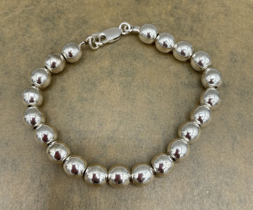 Woman's Sterling .925 "21x" Bead Navajo Pearl Bracelet, bead 8.5mm, sterling silver wheat chain, lobster claw clasp, 16.2 gram, 8"L, Location Case by Office Woman's Sterling .925 "21x" Bead Navajo Pearl Bracelet, bead 8.5mm, sterling silver wheat chain, lobster claw clasp, 16.2 gram, 8"L, Location Case by Office