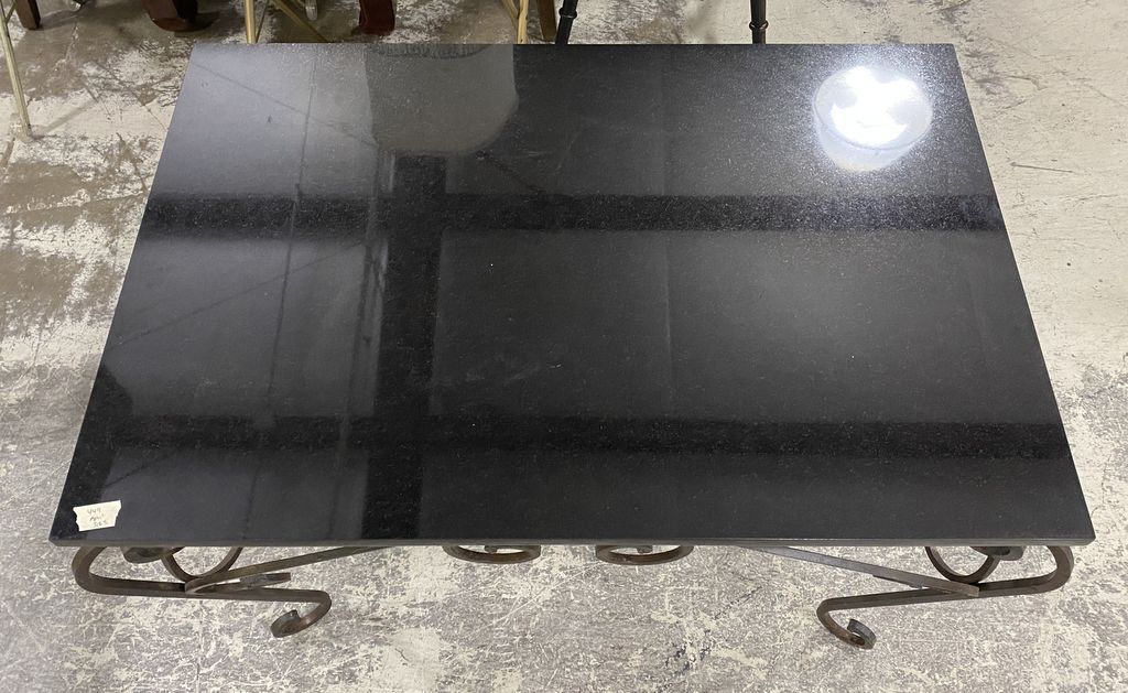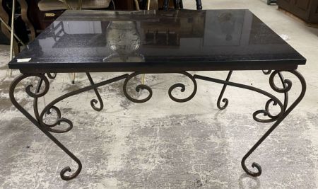 Heavy Marble Top Iron Coffee Table, 23"h., 38"w. Location Row 6 Heavy Marble Top Iron Coffee Table, 23"h., 38"w. Location Row 6