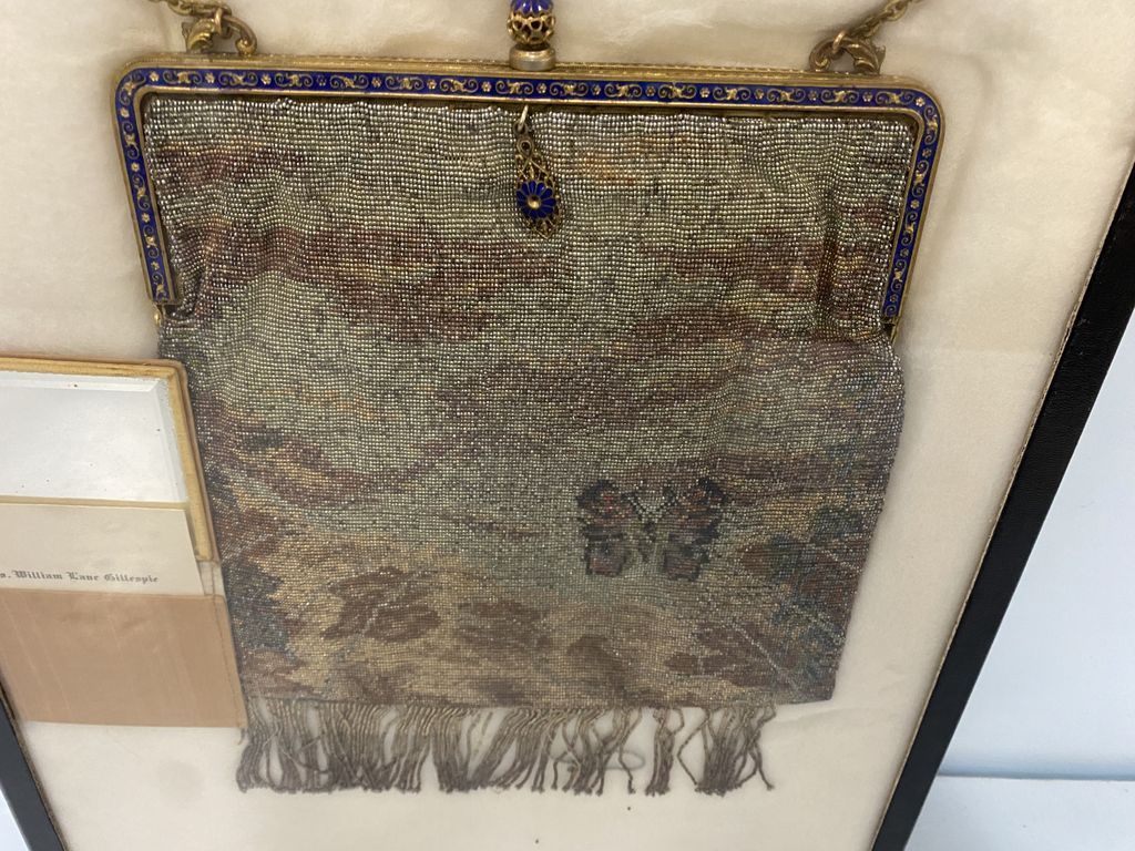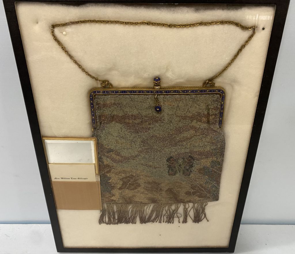 Vintage Early-Mid 1900's Decorative Beaded Purse, with mirror, in shadow case, Location Front Left Shelves Vintage Early-Mid 1900's Decorative Beaded Purse, with mirror, in shadow case, Location Front Left Shelves