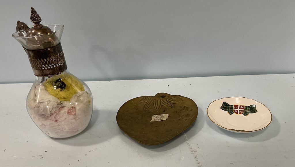 473 Silverplate Vessel, Brass Tray, and Saucer
