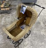 Vintage Wicker Baby Doll Stroller, wheel have wear, Location Row 4 Vintage Wicker Baby Doll Stroller, wheel have wear, Location Row 4