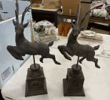 483 Pair of Resin Red Stag Figurals on Pedestals