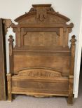 548 Antique Victorian Eastlake Walnut Carved Walnut Hight Back Bed