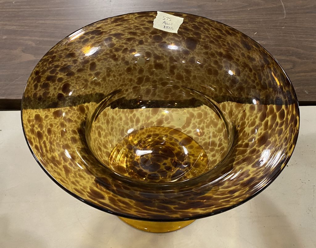 Tortoise Shell Style Glass Center Piece Compote, 8"h, 12"dia, Location Back Metal Shelves Tortoise Shell Style Glass Center Piece Compote, 8"h, 12"dia, Location Back Metal Shelves