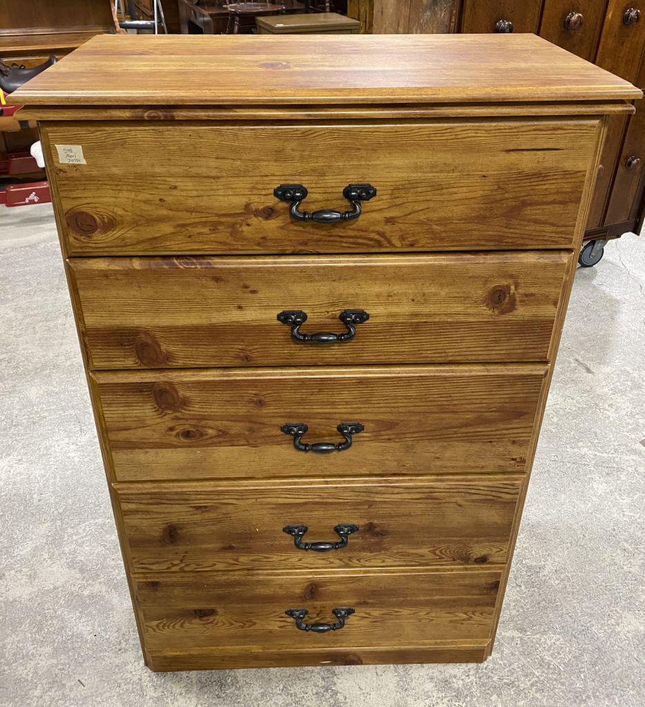 Modern Oak Finish Pressed Wood Chest of Drawers, 48"h., 31"w. Location Row 5 Modern Oak Finish Pressed Wood Chest of Drawers, 48"h., 31"w. Location Row 5
