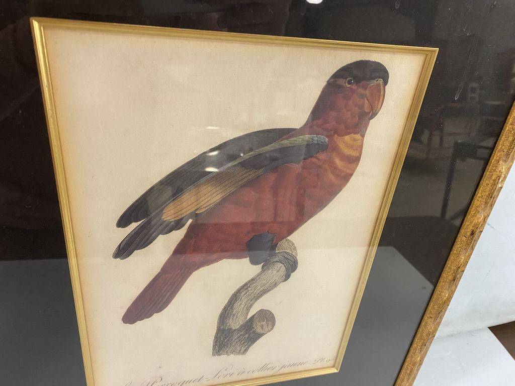 Pair of Vintage Hand Colored Lithographs of Parrots, gold gilt frame, 20"h. 16"w. Location Right Office 2 Pair of Vintage Hand Colored Lithographs of Parrots, gold gilt frame, 20"h. 16"w. Location Right Office 2