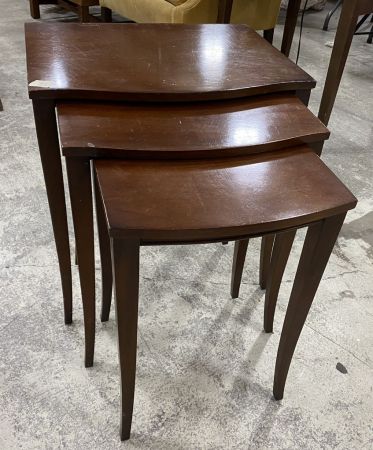 Modern Cherry Three Nest of Tables, has wear, 22"h., 20"w. Location Row 5 Modern Cherry Three Nest of Tables, has wear, 22"h., 20"w. Location Row 5