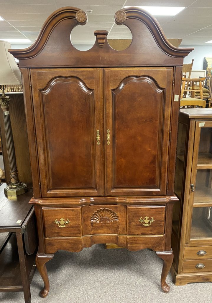 Reproduction Cherry Queen Anne Entertainment High Boy, 72'h., 36"w. Location Row 3 Reproduction Cherry Queen Anne Entertainment High Boy, 72'h., 36"w. Location Row 3