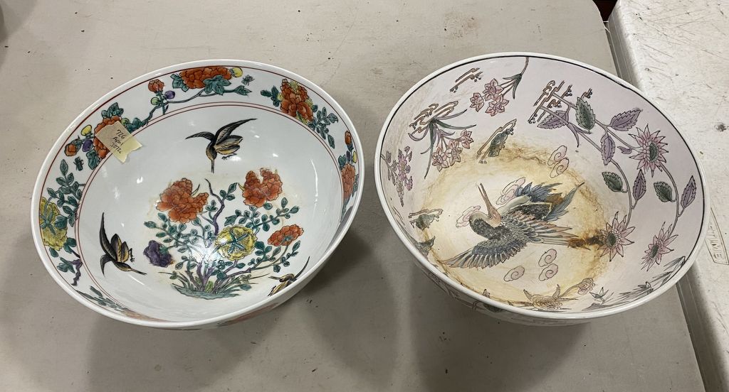 Pair of Japanese Porcelain Serving Bowl, Location Back Metal Shelves Pair of Japanese Porcelain Serving Bowl, Location Back Metal Shelves