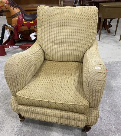 Sherril Co. Upholstery Arm Chair, front casters, light wear. Location Row 1 Sherril Co. Upholstery Arm Chair, front casters, light wear. Location Row 1