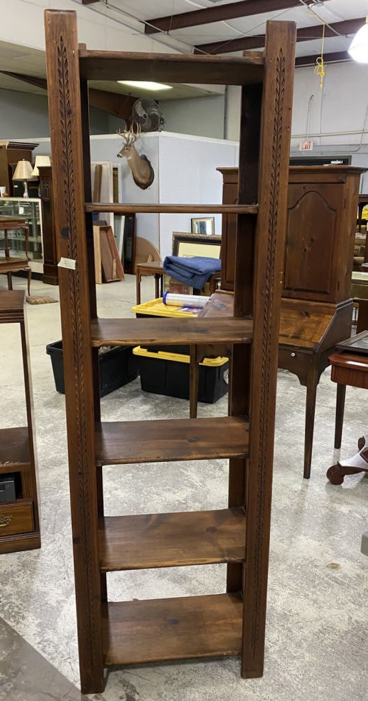 Late 20th Century Wheat Style Display Stand, open display, 78"h., 24"w. Location Right Front Shelves Late 20th Century Wheat Style Display Stand, open display, 78"h., 24"w. Location Right Front Shelves