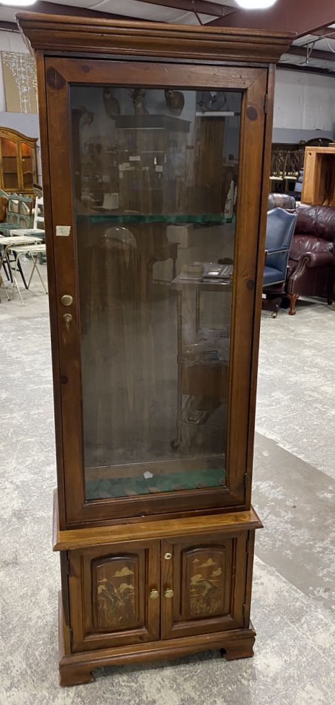 Modern Pine 6 Gun Cabinet, Single glass door, two bottom doors, 73"h., 23"w. Location Row 3 Modern Pine 6 Gun Cabinet, Single glass door, two bottom doors, 73"h., 23"w. Location Row 3
