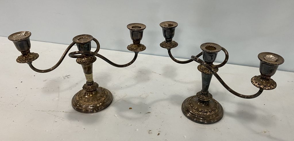 Pair of Silver Plate Candle Holders, 9"h. Location Black Metal Shelves Pair of Silver Plate Candle Holders, 9"h. Location Black Metal Shelves