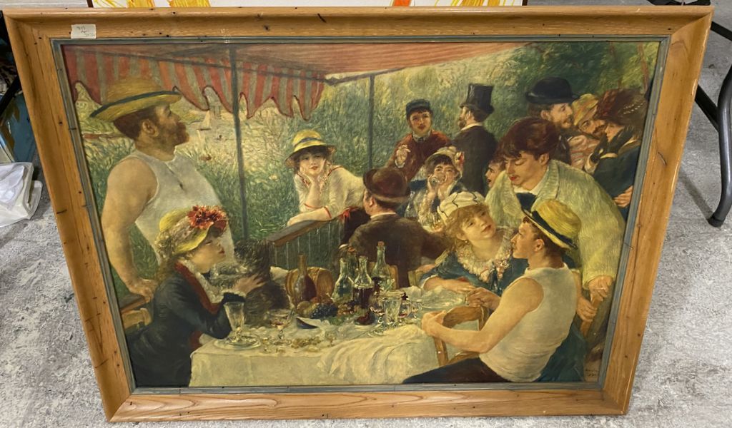 Framed Print of Party Scene, 30"h., 40"w. Location Right Office Framed Print of Party Scene, 30"h., 40"w. Location Right Office