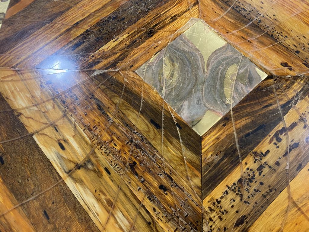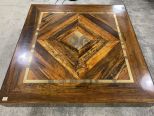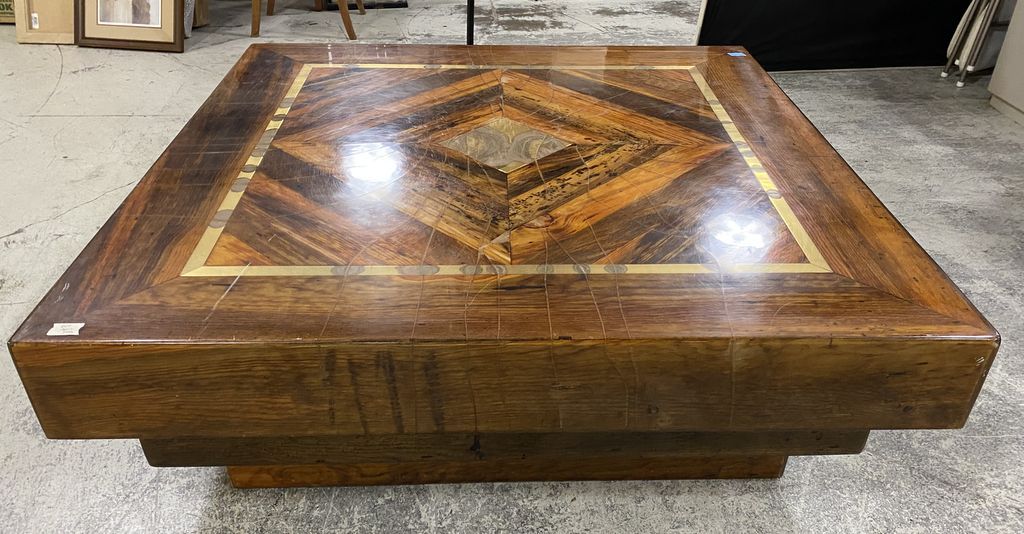 Large Square Wood Coffee Table, cracks in surrounding glass, 16"h., 48"w. Location Left Office 1 Large Square Wood Coffee Table, cracks in surrounding glass, 16"h., 48"w. Location Left Office 1