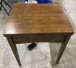 Late 20th Century Cherry Singer Sewing Machine Cabinet, has singer sewing machine, 31"h., 25"w. Location Row 4 Late 20th Century Cherry Singer Sewing Machine Cabinet, has singer sewing machine, 31"h., 25"w. Location Row 4