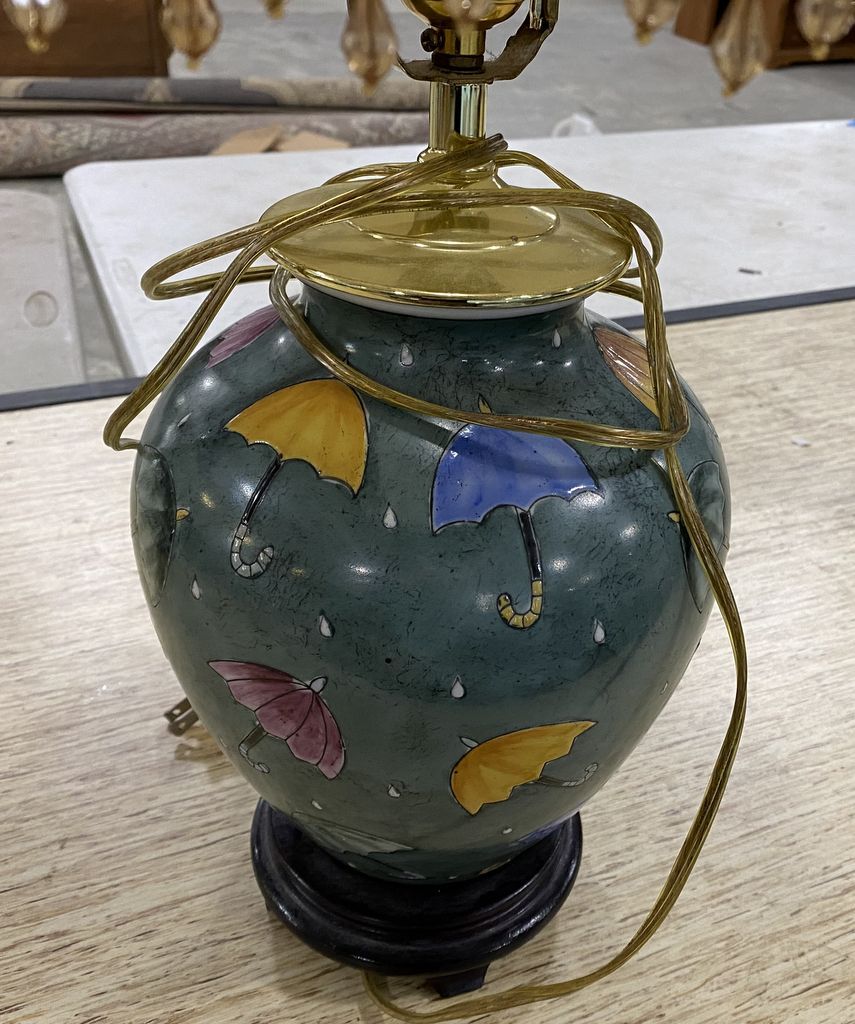 Porcelain Umbrella Vase Lamp, Location Right Metal Shelves Porcelain Umbrella Vase Lamp, Location Right Metal Shelves