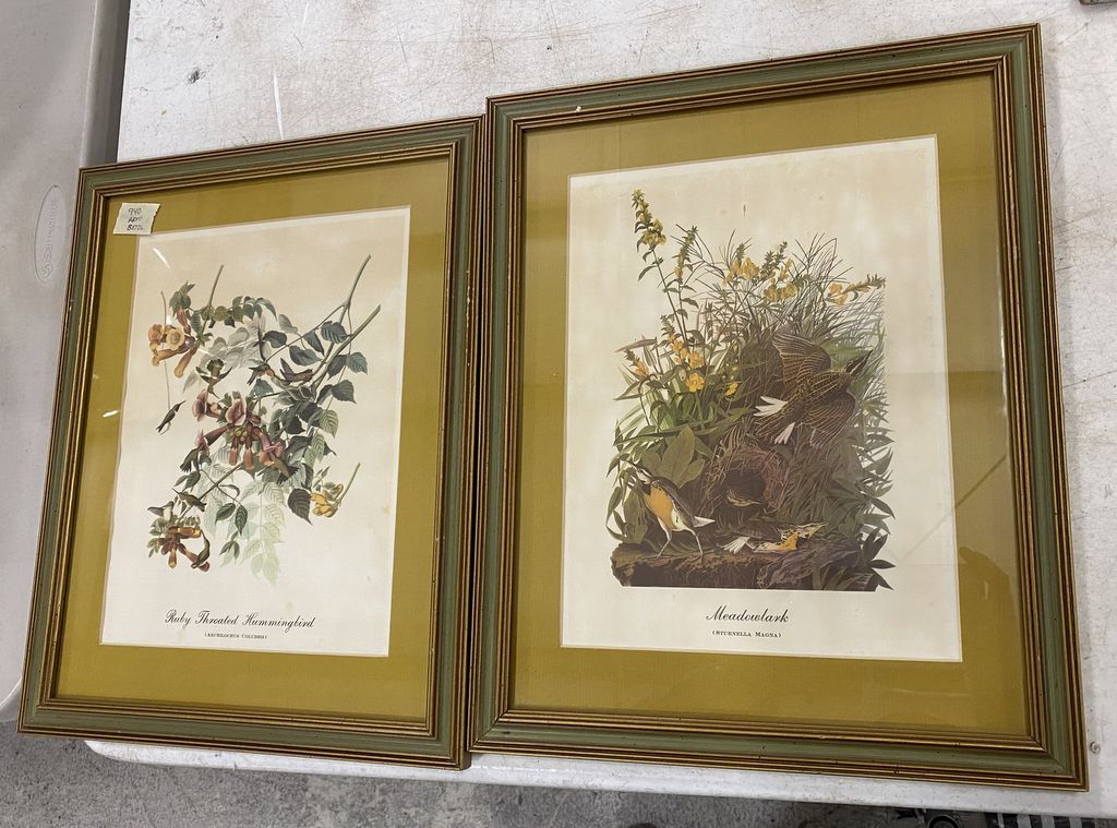 Meadowlark and Ruby Throated Hummingbird Prints, 16"h., 13"w, Location Back Metal Shelves Meadowlark and Ruby Throated Hummingbird Prints, 16"h., 13"w, Location Back Metal Shelves