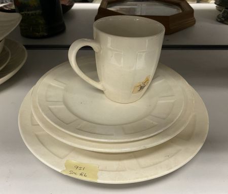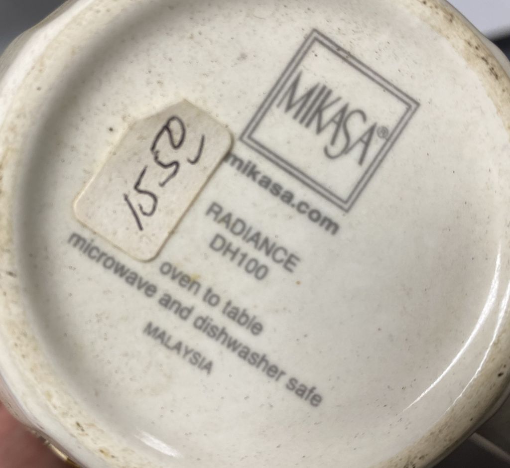 Mikasa "Radiance" Dinner Plate, Plates, and Cup, Location Right Metal Shelves Mikasa "Radiance" Dinner Plate, Plates, and Cup, Location Right Metal Shelves