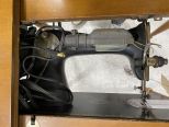 Late 20th Century Cherry Singer Sewing Machine Cabinet, has singer sewing machine, includes bench, 32"h., 27"w. Location Row 4 Late 20th Century Cherry Singer Sewing Machine Cabinet, has singer sewing machine, includes bench, 32"h., 27"w. Location Row 4