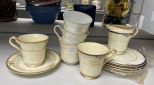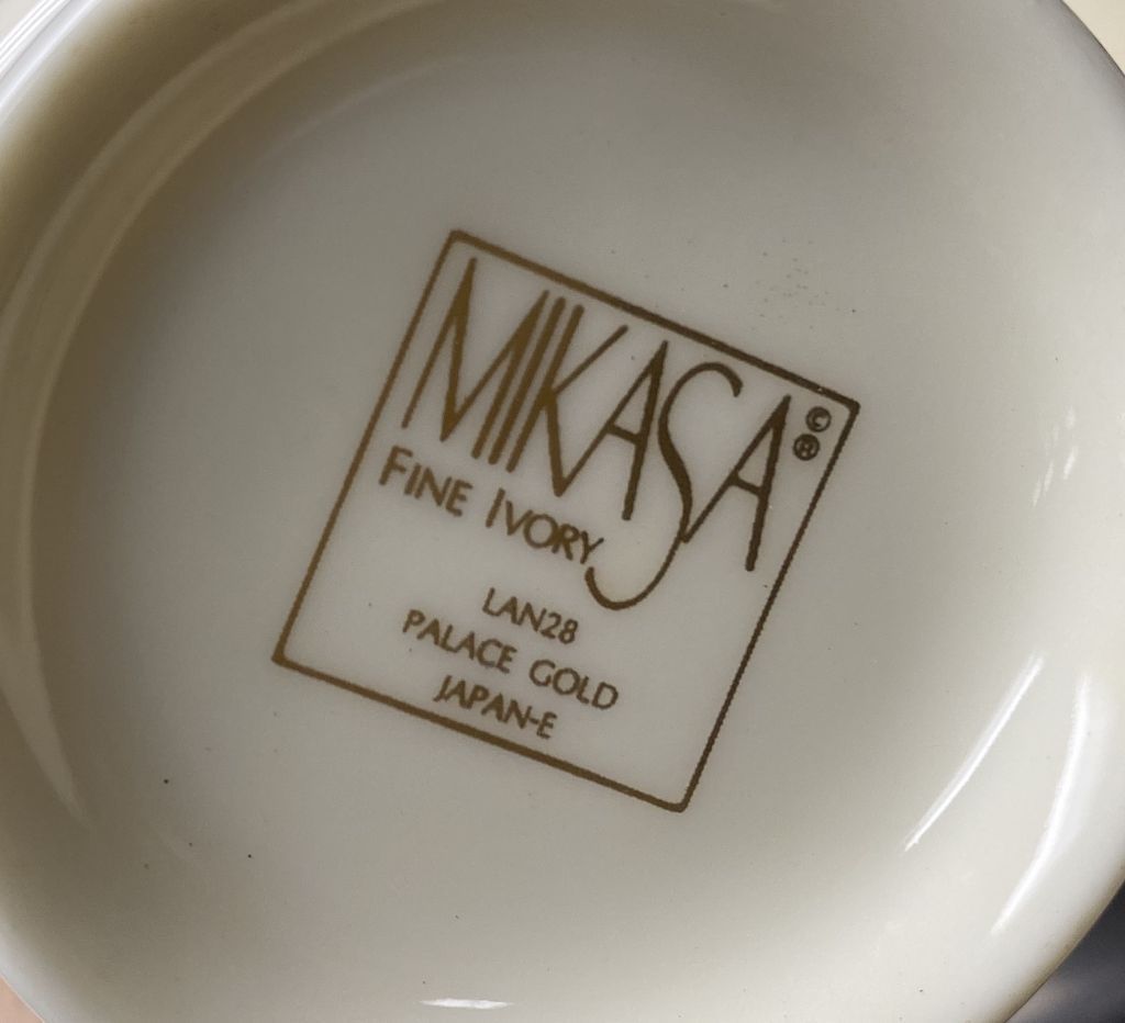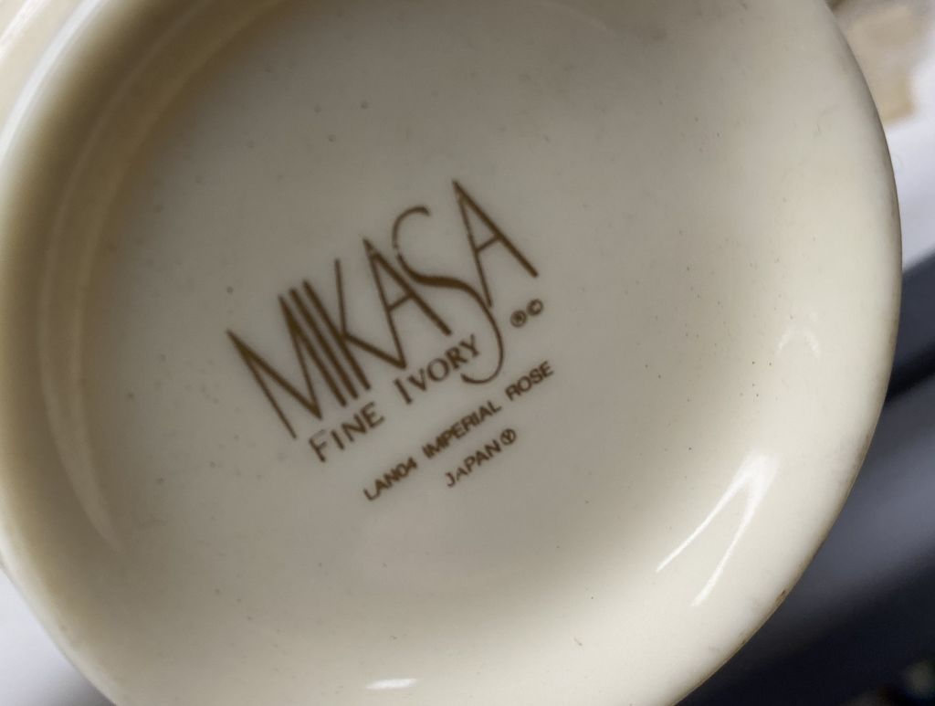 Assorted Group of Porcelain china, cups, dessert plates, saucer, Mikasa Imperial Rose, Palace Gold, Location Right Metal Shelves Assorted Group of Porcelain china, cups, dessert plates, saucer, Mikasa Imperial Rose, Palace Gold, Location Right Metal Shelves