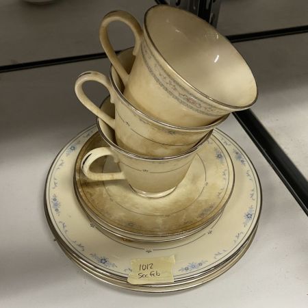 Lenox "Charleston" Plates, Cups, and Saucers, Location Right Metal Shelves Lenox "Charleston" Plates, Cups, and Saucers, Location Right Metal Shelves