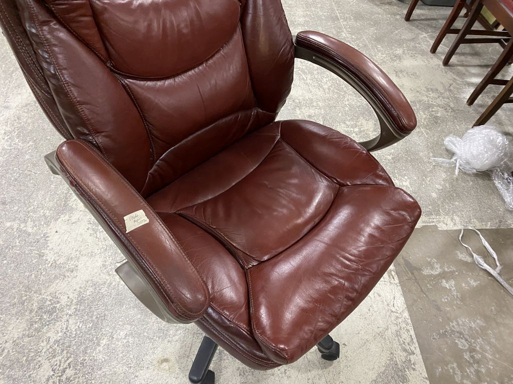 Maroon Vinyl Leather Office Desk Chair, with wheels. Location Row 1 Maroon Vinyl Leather Office Desk Chair, with wheels. Location Row 1