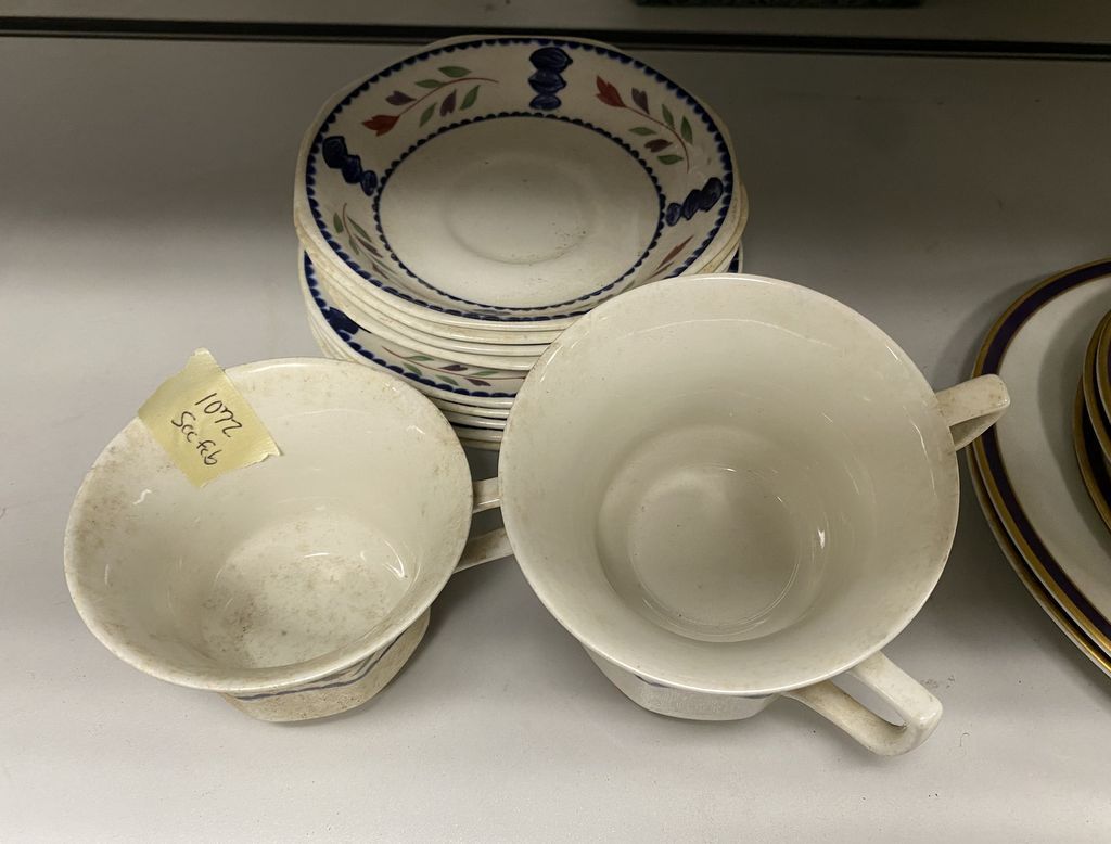 Adams Lancaster Ironstone Plates, Saucers, and Cups, Location Right Metal Shelves Adams Lancaster Ironstone Plates, Saucers, and Cups, Location Right Metal Shelves
