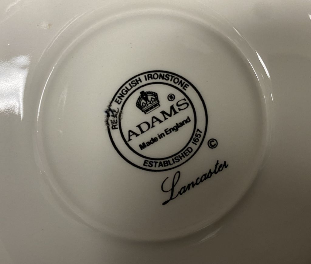 1072 Adams Lancaster Ironstone Plates, Saucers, and Cups
