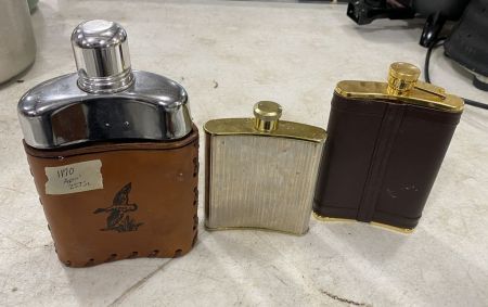 Three Collectible Liquor Flasks, Location Back Metal Shelves Three Collectible Liquor Flasks, Location Back Metal Shelves