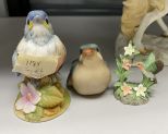 1184 Two Ceramic Pottery Birds and Resin Hummingbird