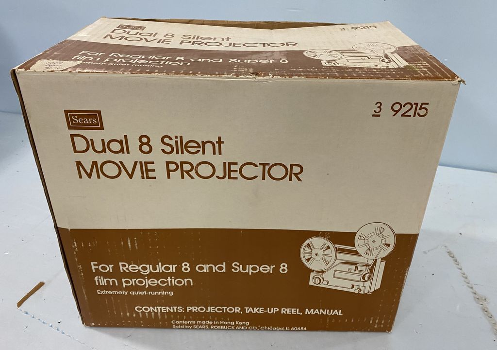 Sears Dual 8 Silent Movie Projector, in box, Location Back Metal Shelves Sears Dual 8 Silent Movie Projector, in box, Location Back Metal Shelves