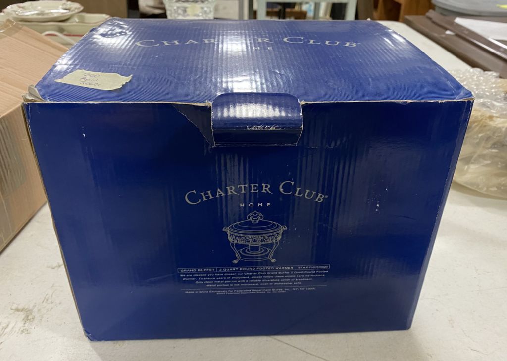 Charter Club 2 Quart Round Footed Warmer, Location Back Metal Shelves Charter Club 2 Quart Round Footed Warmer, Location Back Metal Shelves