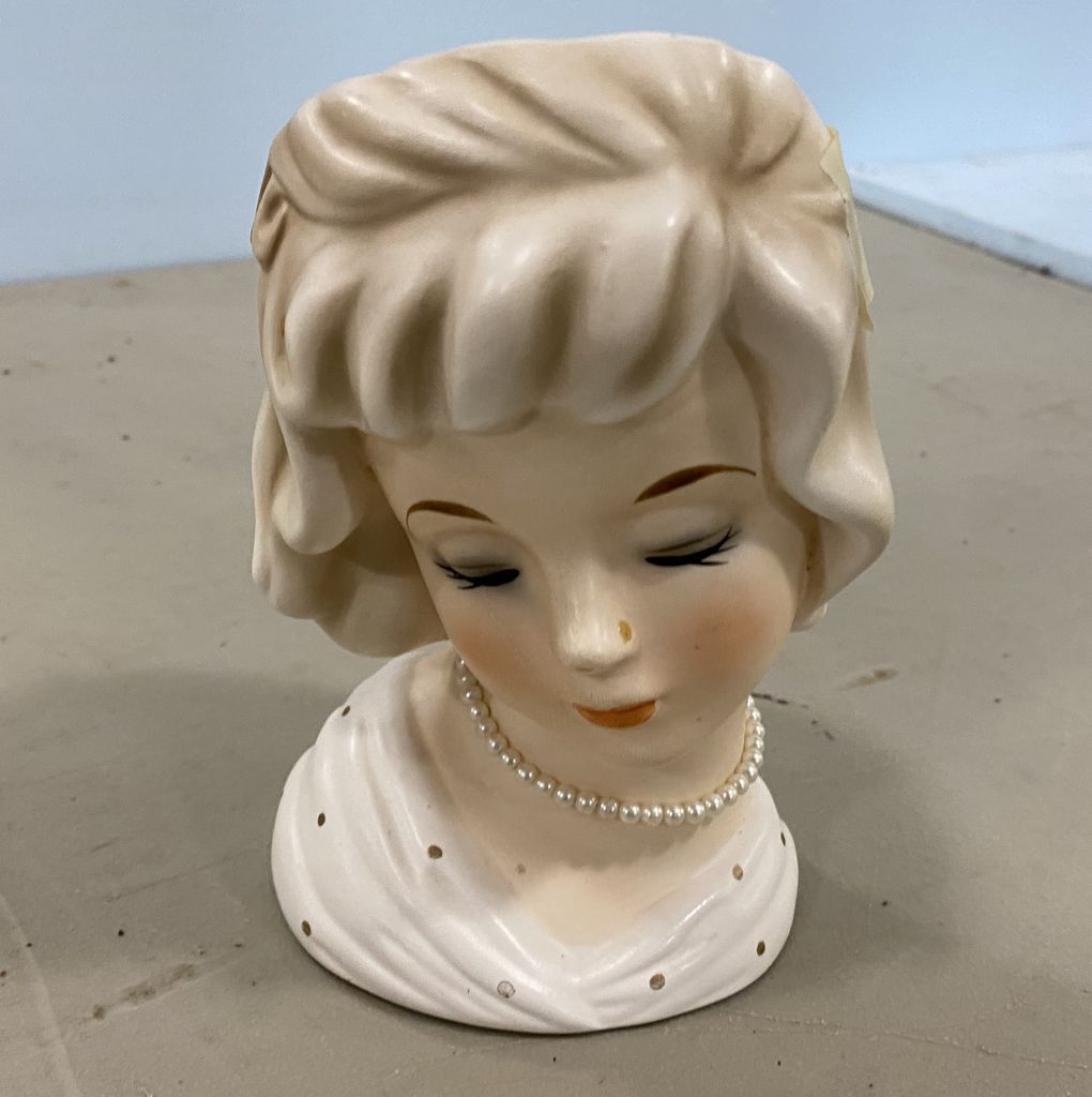 National Potteries Porcelain Lady Head Vase, Location Right Metal Shelves National Potteries Porcelain Lady Head Vase, Location Right Metal Shelves