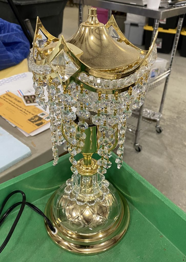 Decorative Brass Color Table Lamp, 14"h, Location Right Metal Shelves Decorative Brass Color Table Lamp, 14"h, Location Right Metal Shelves